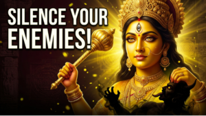 Maa Baglamukhi is one of the ten Mahavidyas, representing immense divine energy. She is often depicted holding the tongue of a demon, symbolizing her ability to control speech, thoughts, and harmful intentions.